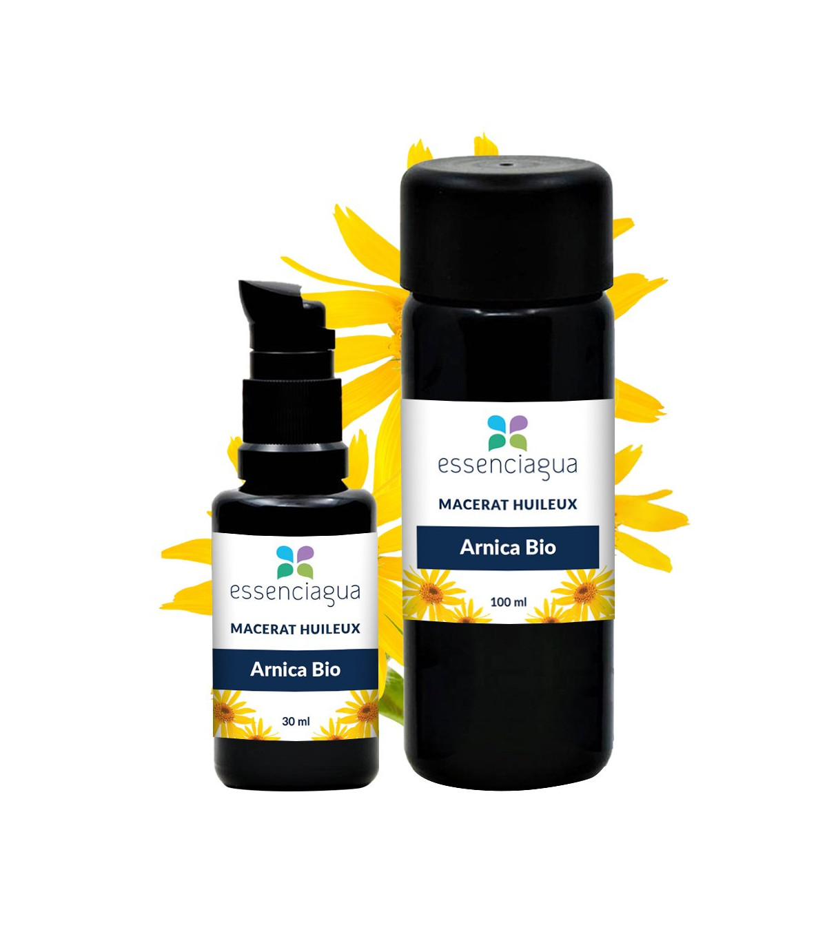 Das Arnika-Mazerat von Essenciagua ist eine natürliche, handgefertigte Pflege aus wilden Arnika-Blüten und Sesam-Pflanzenöl, zertifiziert 100% biologisch von Certipaq Bio. Bekannt für seine außergewöhnlichen therapeutischen Eigenschaften, ist Arnika eine Bergpflanze, die für ihre entzündungshemmenden und schmerzlindernden Vorteile bekannt ist.