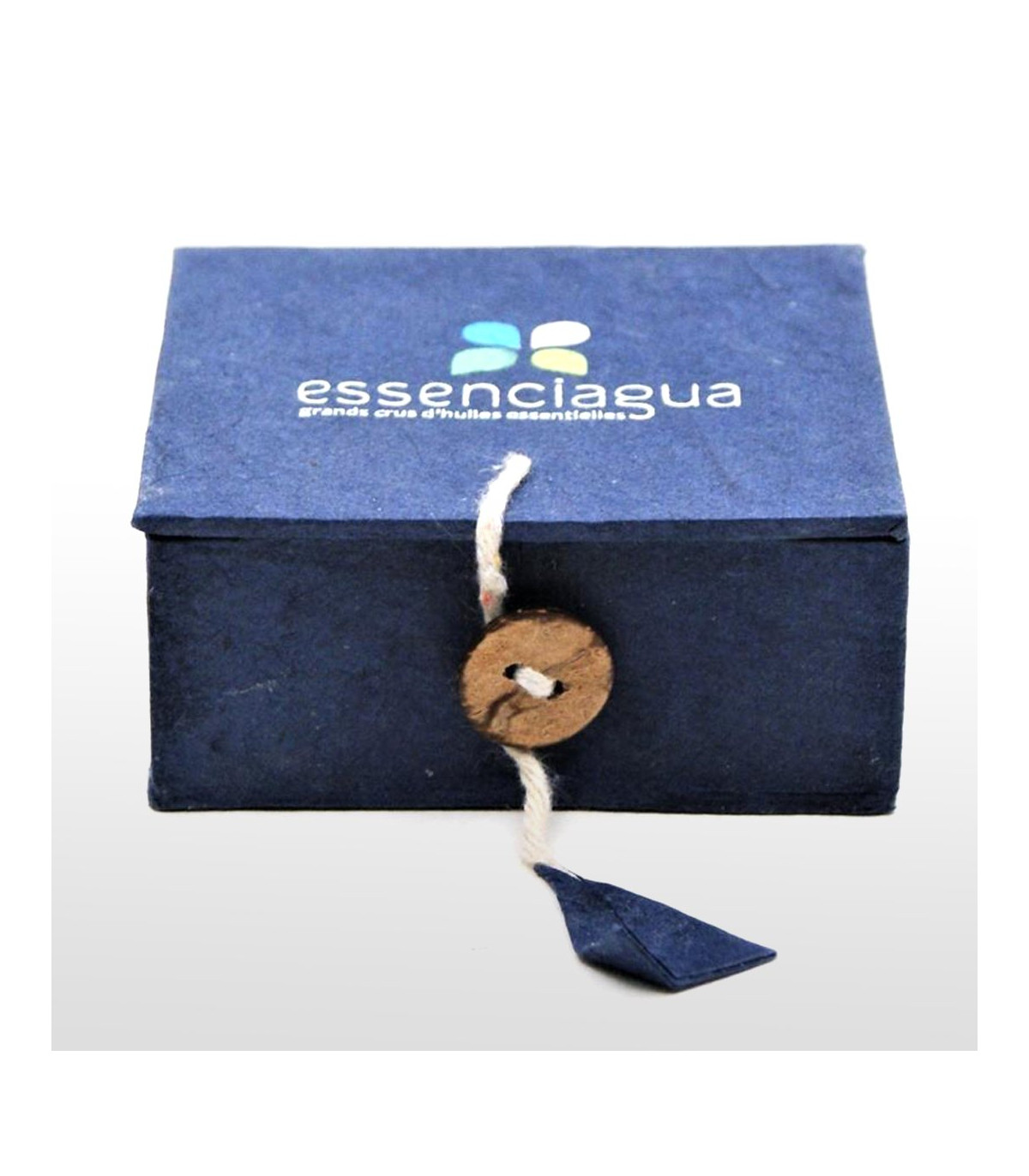 La CAJA 2 HE es mucho más que una simple caja de almacenamiento; es una pieza artesanal confeccionada cuidadosamente por nuestros socios en Nepal. Esta caja está especialmente diseñada para albergar dos frascos de aceites esenciales, ofreciendo así una solución elegante y práctica para organizar y proteger tus preciados aceites.