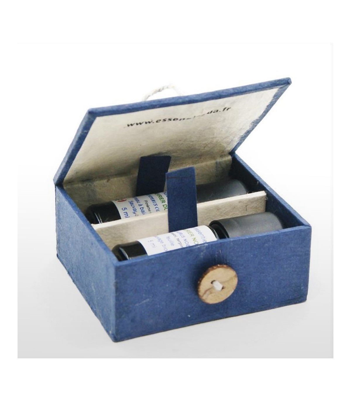 Hecha a mano por talentosos artesanos nepalíes, cada CAJA 2 HE es el resultado de un trabajo artesanal auténtico y meticuloso. Los materiales utilizados son de la más alta calidad, lo que confiere a cada caja su durabilidad y su belleza natural. Así, puedes tener la seguridad de que tus aceites esenciales estarán cuidadosamente preservados.