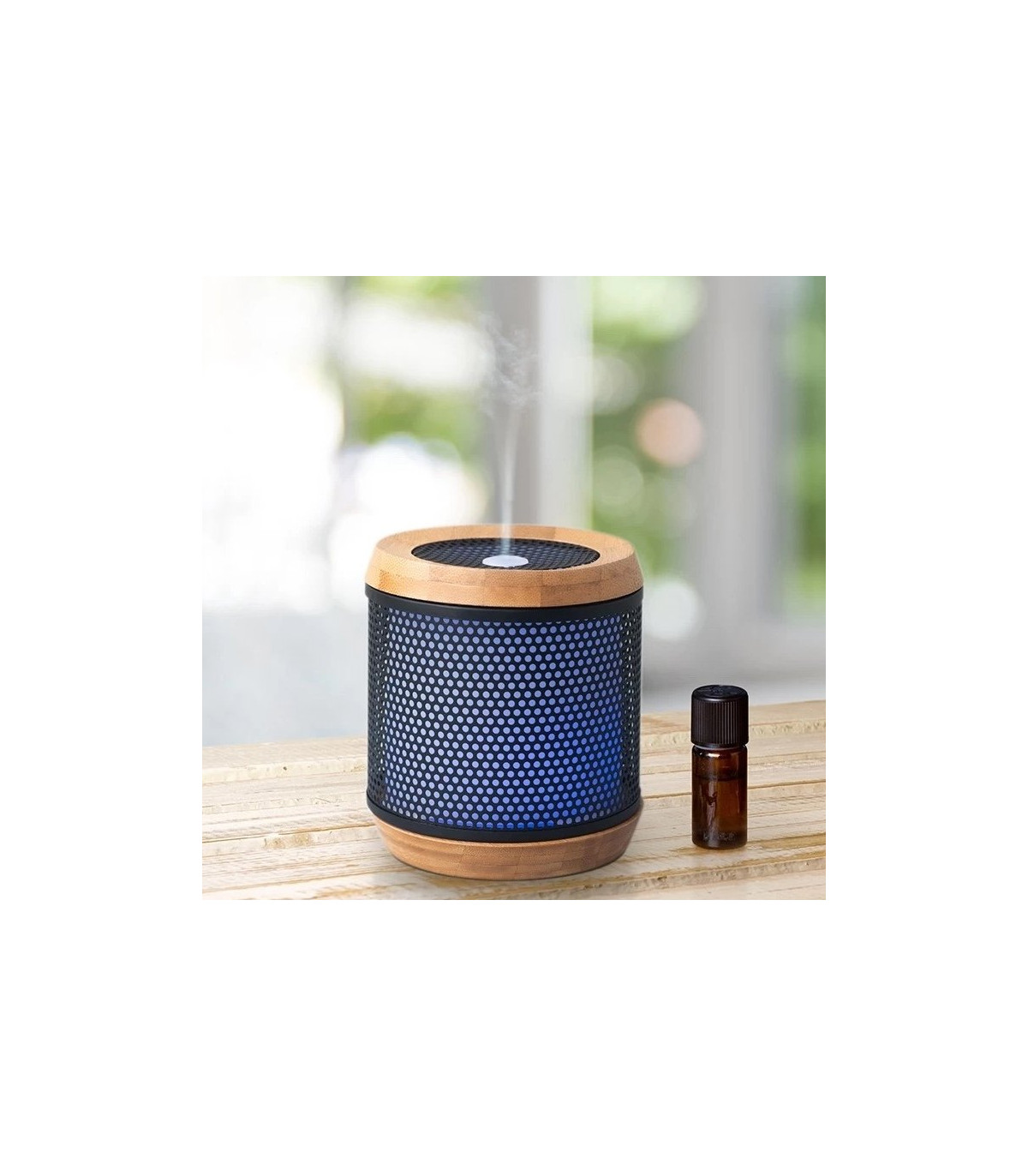 Habillé de bambou et de métal façonné, Audelia utilise la technologie de diffusion par ultrasons pour brumiser vos huiles essentielles ou vos hydrolats. Il offre également plusieurs options d’ambiance lumineuse et son utilisation est simple et intuitive. Pratique, Il s’arrête tout seul lorsque son réservoir est vide.