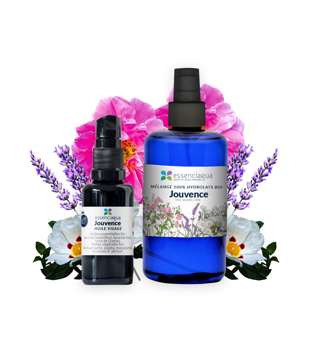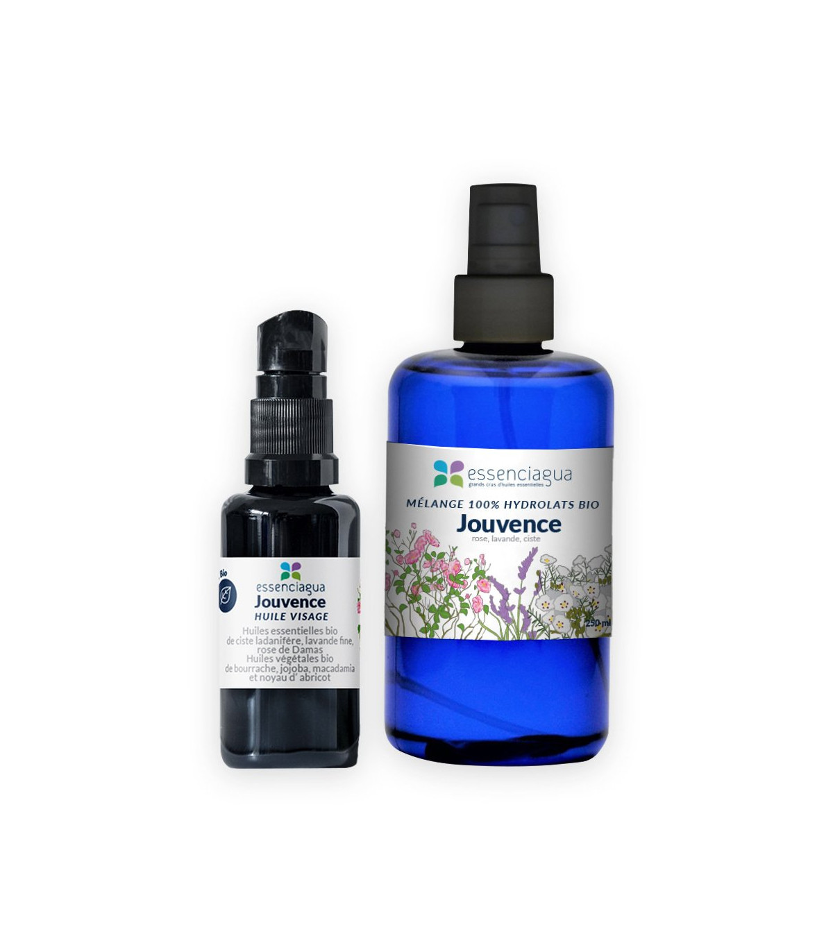 Scopri la Routine Viso Giovinezza di Essenciagua, una sinergia di oli essenziali e vegetali progettata per nutrire e rivitalizzare la tua pelle. Questo kit include un Olio Viso Giovinezza (30 ml), ricco di oli essenziali di rosa, cisto e lavanda fine, e un’Acqua Anti-Età (250 ml), una miscela di idrolati delicatamente selezionati.