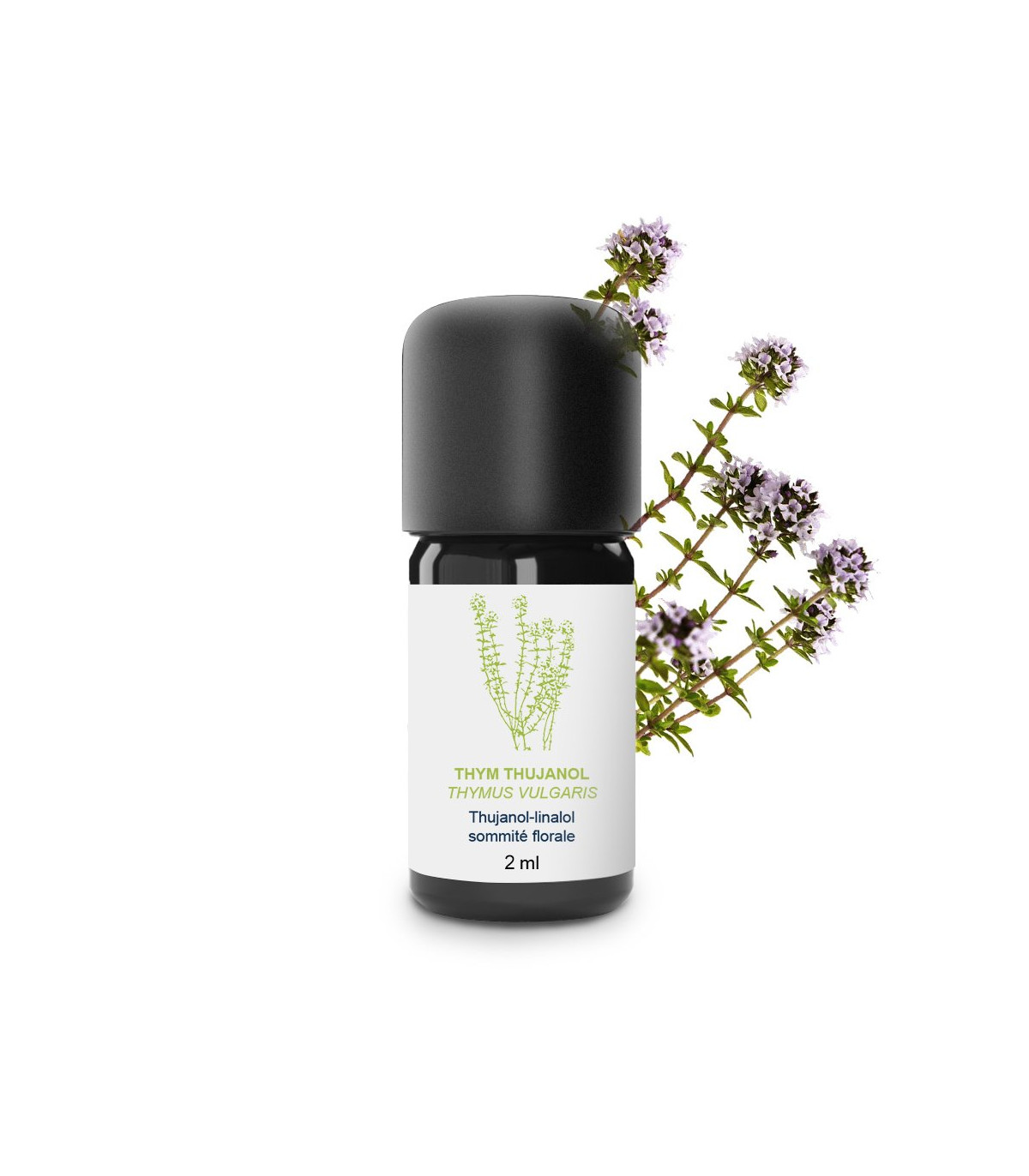 L’olio essenziale di Timo Thujanol è particolarmente efficace contro le angine e stimola il sistema immunitario. Le sue proprietà espettoranti e antisettiche lo rendono utile per alleviare i sintomi della bronchite e liberare le vie respiratorie. È anche riconosciuto per i suoi effetti benefici in caso di tagli, dove le sue proprietà antisettiche favoriscono la pulizia e la guarigione.